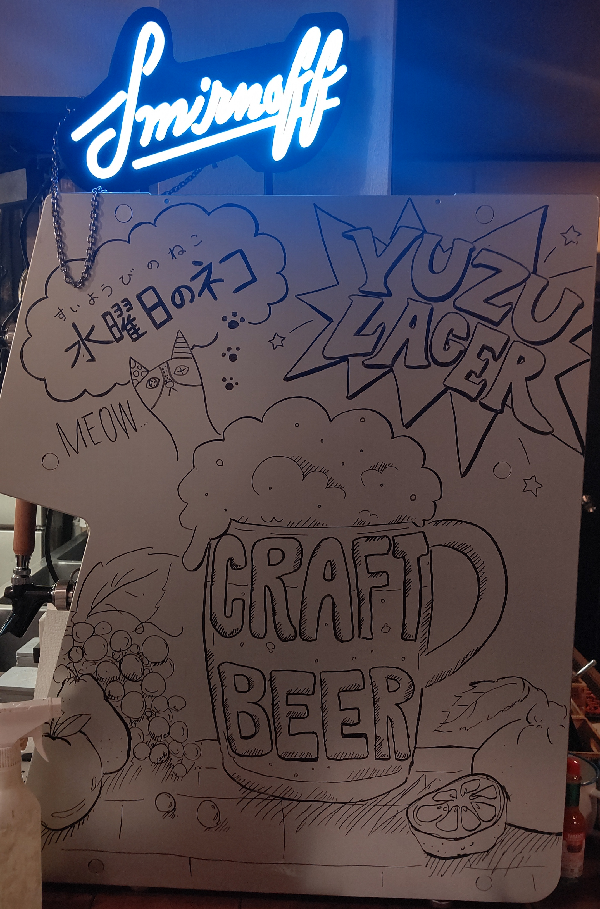 - 馴染みのお店で飲んでる際の急な依頼だったので、難しいことは考えずとにかく楽しく描いた作品です。 お店の内装の一部を任せてもらえた初めての機会だったので、どんな事をヒアリングすべきか考えるきっかけになりました。